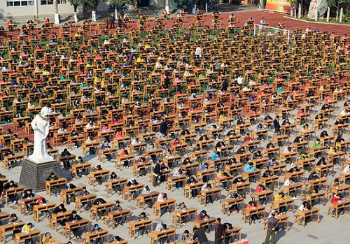 陝西省寶鶏市のある學(xué)校で13日、全校生徒が參加する試験が行われた。學(xué)校の校庭に1200あまりの機(jī)とイスが整然と並べられ、學(xué)生が同時(shí)に試験會(huì)場(chǎng)に入場(chǎng)。試験監(jiān)督の教師80人あまりが腳立や望遠(yuǎn)鏡、高解像度カメラ、メガホンなどを駆使してカンニングがないかどうかの監(jiān)視を行った。北京青年報(bào)が伝えた。