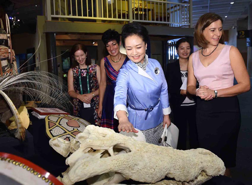 中國の習近平國家主席夫人の彭麗媛夫人は16日、オーストラリアクイーンズランド州のニューマン首相の夫人にともなわれて、クイーンズランド州博物館を見學した。夫人は彭麗媛夫人に蘭の花を模った手作りのブローチや先住民の打楽器、先住民アーチストのCDを贈った。彭麗媛夫人はお禮にパンダを描いた湘繍を贈った。彭麗媛夫人は笑顔で、昨日私が抱き上げたコアラは貴國の國寶だが、パンダも中國の國寶で、とても可愛らしいと語った。彭麗媛夫人の言葉は會場で笑顔を誘った。 國際在線が伝えた。(編集YH)