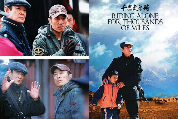 張蕓謀と高倉(cāng)?。ㄗ螅?、「単騎、千里を走る」のポスター(右)