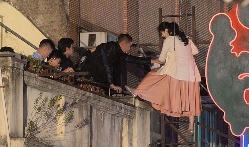 范氷氷が映畫撮影でスタントを利用せずに避難用はしごでアクションシーン (2)