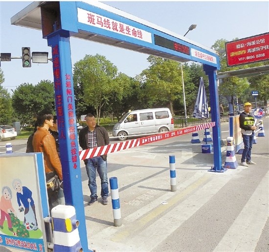 この裝置は、市民が橫斷歩道を渡る際の規(guī)範(fàn)化を進(jìn)め、「中國式道路橫斷」を抑制する目的で、溫州市街地の歩行者數(shù)がかなり多い交差點(diǎn)に設(shè)置された。