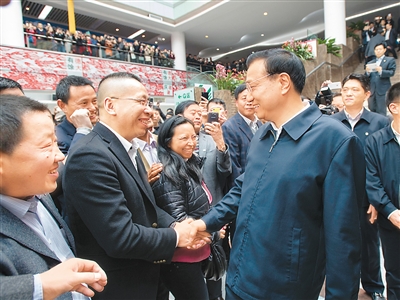 インターネット経済など新産業(yè)の発展に関心を寄せる李総理は、到著後すぐに義烏市青巖劉村を訪れた。中國(guó)最大のネットショップ運(yùn)営村と言われるこの村では、2800店舗あまりのネットショップが経営されており、1萬(wàn)人あまりの雇用を創(chuàng)出している。李総理は何件かのネットショップをまわって経営狀況を?qū)い亭酷帷⒋韦韦瑜Δ酥刚筏俊?/p>