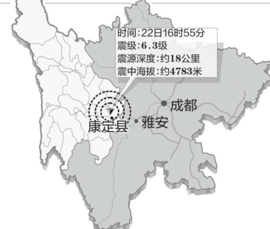 11月22日16時55分、四川省の甘孜チベット族自治州康定県で震度6.3の地震があった。震源の深さは約18キロである。