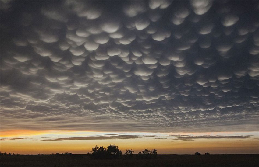 イギリスの『デイリー?メール』の報(bào)道によると、嵐を追う米ネブラスカ州出身のマイク?ホリンシェッドさんは、目を疑うような「雲(yún)の泡」の寫真を撮影した。この雲(yún)は「乳房雲(yún)」と呼ばれ、雷を伴う嵐の後に現(xiàn)れる珍しい現(xiàn)象である。