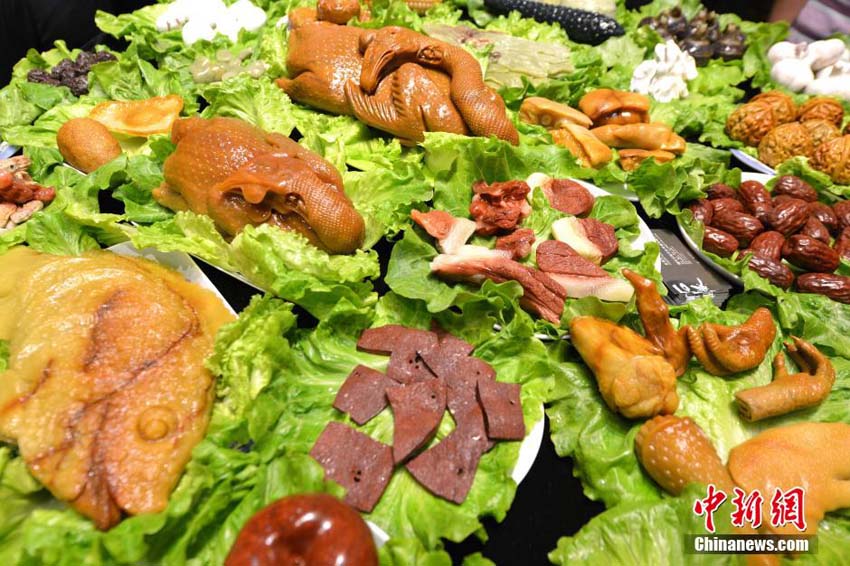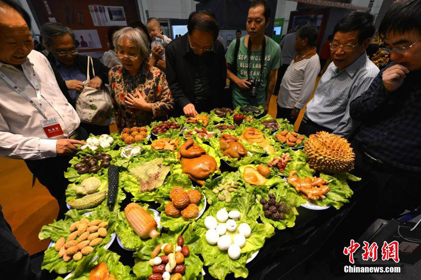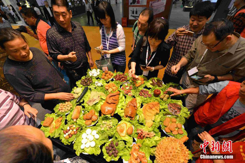 福建省廈門(アモイ)市で行われたある展示會で23日、本物の料理そっくりの外見の奇石で構成された「満漢全席」が展示され、多くの市民が一目見ようと集まった。中國新聞網が伝えた。(編集YH)