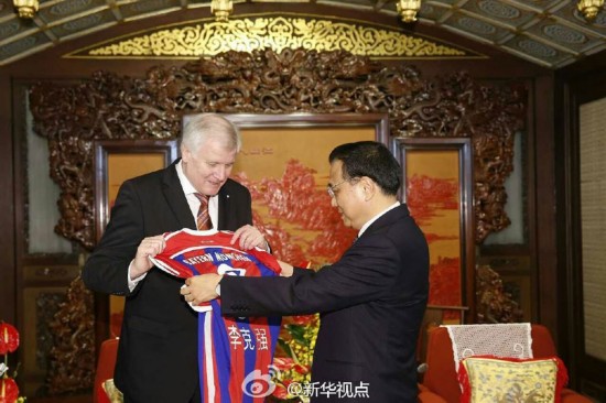 李克強総理にFCバイエルン?ミュンヘンのユニフォームを贈呈 (2)