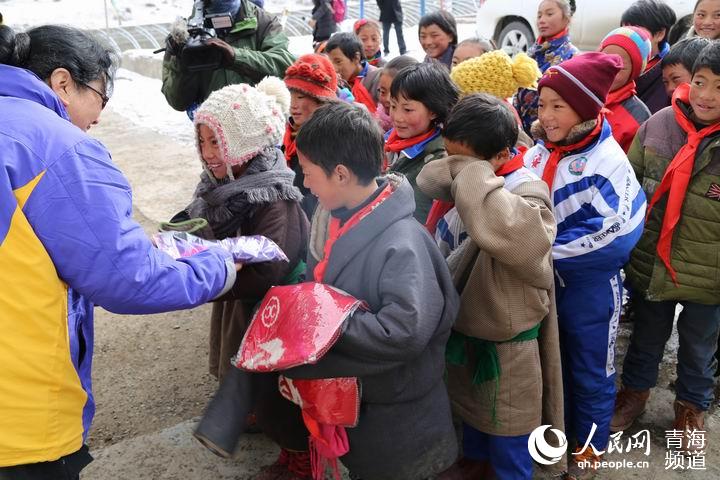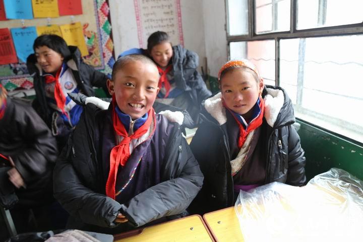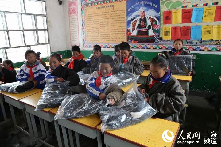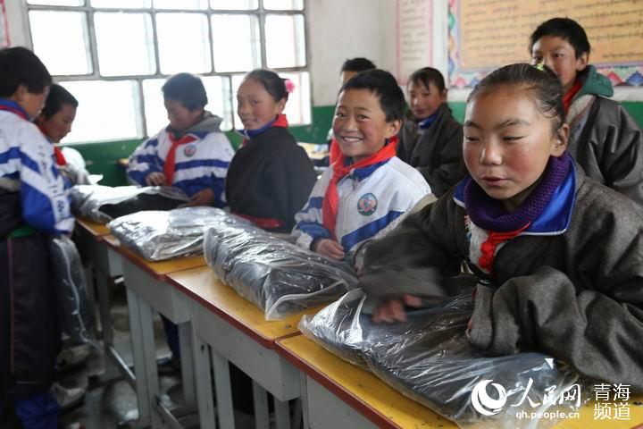 李克強(qiáng)総理からの寄付金で購入された綿入りの上著200著、綿入り靴200足、および浙江省義烏市中國共青団委員會(huì)からの支援物資が24日午前、青海省果洛(ゴロク)チベット族自治州班瑪県馬可河郷の全寮制小學(xué)校の子供たちに手渡された。人民網(wǎng)が伝えた。