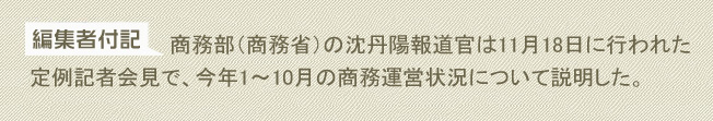 1~10月の地方企業(yè)による対外直接投資は323億9千萬(wàn)ドルで同33.1%増加し、同期の対外直接投資全體の39.6%を占め、割合が前年を4.6ポイント上回った。