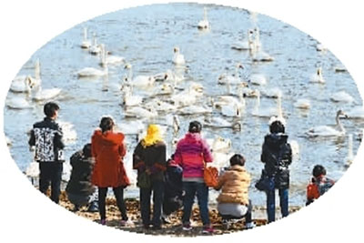 シベリアにいた數(shù)萬(wàn)羽の白鳥が山東省栄成市煙墩角の白鳥湖へやって來た。ここで冬を越すという。多くの寫真愛好家や観光客が現(xiàn)地を訪れ、白鳥の神秘的な美しさに目を奪われていた。(編集KS)