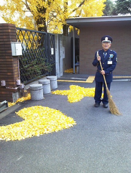 大學(xué)警備員が落ち葉で描いた蕓術(shù)作品、ネットで大人気 (5)