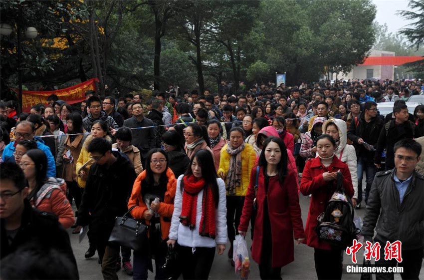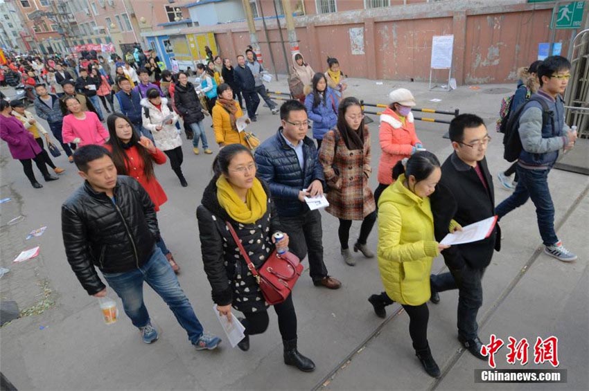寫真は山西省太原市のある國家公務(wù)員試験會場で11月30日、順番に會場に入る受験生?!竾以囼Y」と呼ばれる中國の國家公務(wù)員募集共通科目の筆記試験が同日、行われた。10月26日に締め切られた出願者資格審査によると、全國で昨年より11萬5千人少ない合計140萬9千人が資格審査を通過した。募集計畫のポストは昨年より約3千増えて2萬2千となり、競爭率は昨年の77∶1を下回るおおよそ64∶1となった。出願者數(shù)と競爭率のいずれも、ここ5年の最低を記録した。中國新聞網(wǎng)が伝えた。(編集YH)