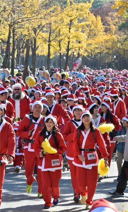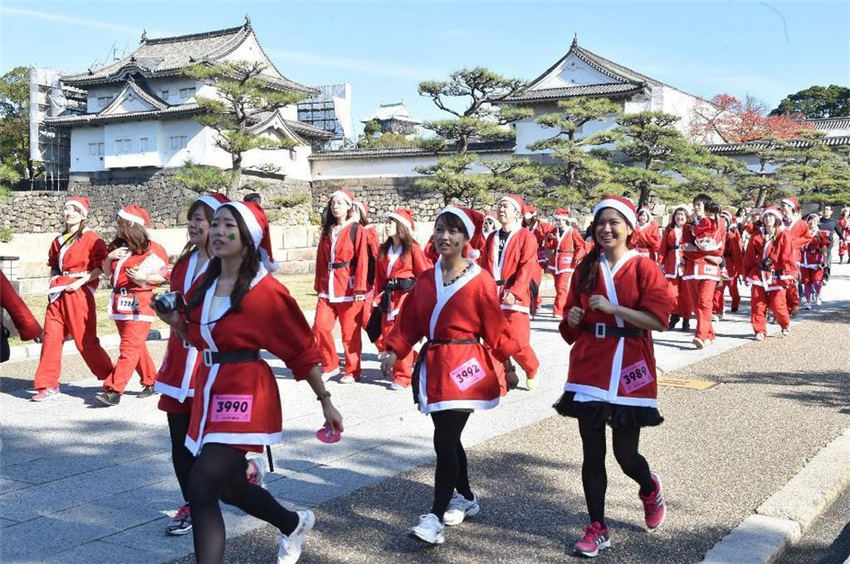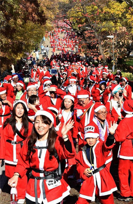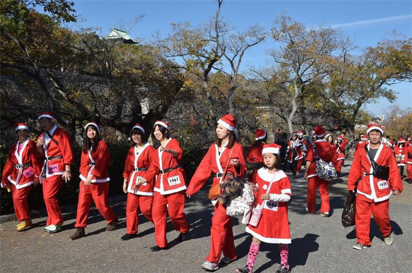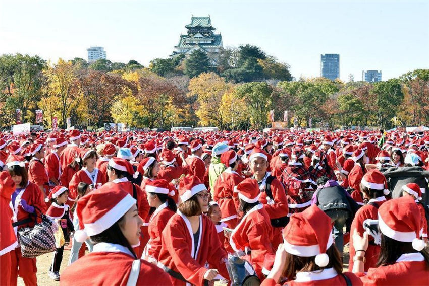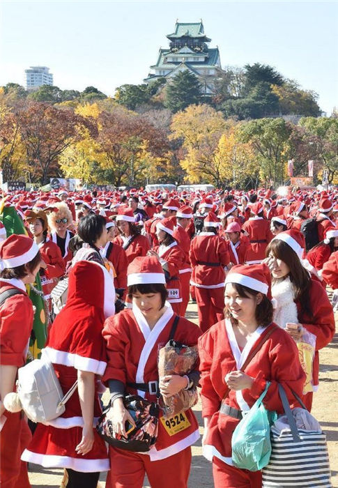 1萬1000人の「サンタクロース」が、病気の児童にクリスマスプレゼントを?qū)盲堡毪郡帷?1月30日に大阪市中心の大阪城公園に集結(jié)した。サンタクロースは公園內(nèi)を走り、赤い海を形成し、大阪城公園をクリスマス一色に染めた。日本産経新聞が伝えた。