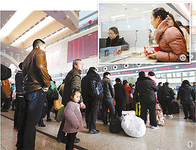| ①:石家荘駅乗車(chē)券販売所で鉄道乗車(chē)券を購(gòu)入する乗客 ②:フフホト駅乗車(chē)券販売所で購(gòu)入に関して問(wèn)い合わせる乗客 |