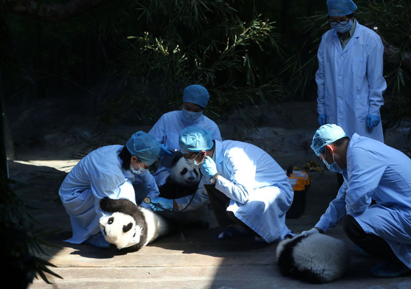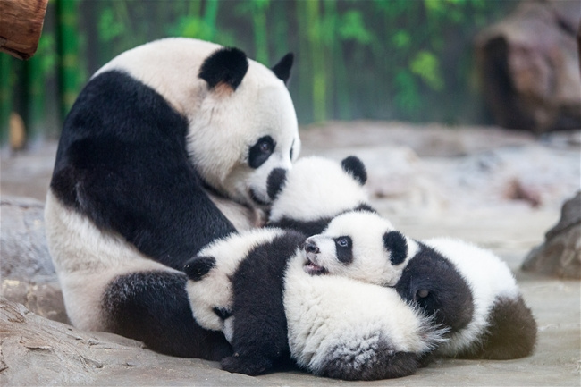 今年7月29日早朝に誕生した中國広東省の「長隆野生動物世界」の世界唯一のパンダの三つ子は、生後1カ月、目を開ける、生後100日間といった成長の段階を順調(diào)に経て、現(xiàn)在では平均體重が8キロ以上に成長している。飼育係の観察と判斷によると、パンダの母親「菊笑」は三つ子の赤ちゃんとの共同生活を受け入れているようだ。長隆では世界で初めて、メスのパンダが同時に三つ子を育てる奇跡を?qū)g現(xiàn)した。中青網(wǎng)が伝えた。(編集YH)
