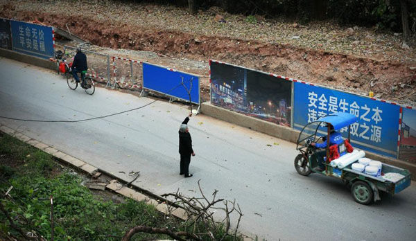 風(fēng)で落ちかかった電線を30分も持ち上げた高齢女性 (2)