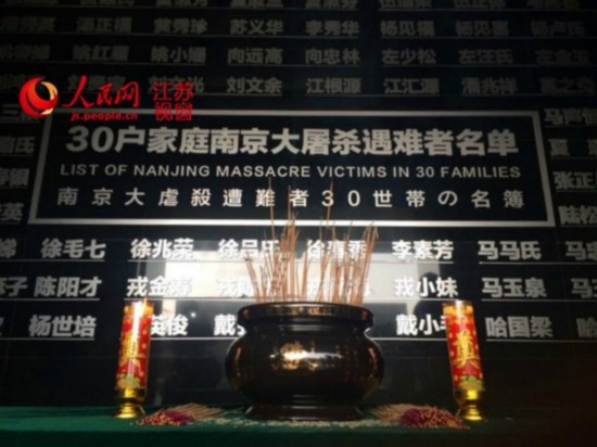 南京大虐殺遭難同胞記念館冥思庁の入口に新たに刻まれた犠牲者108人の氏名。