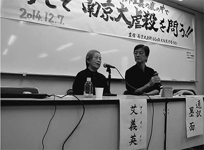 大阪の証言集會(huì)に參加した南京大虐殺の生存者?艾義英さん。