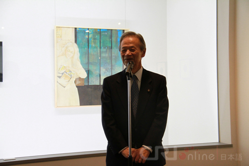 日中友好會(huì)館の江田五月會(huì)長(zhǎng)は、オープニングレセプションの挨拶に立ち、3ヵ國(guó)の若手アーティストが一緒に蕓術(shù)活動(dòng)を展開することを通して、北東アジアが一體感を強(qiáng)め、相互理解を深めることに期待を寄せた。