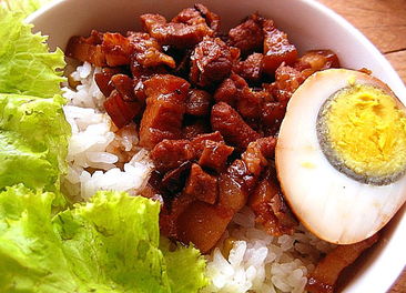 4.煮込んだ豚バラ肉を取り出し、刻んで鍋にもどし、さらに20分煮込む。鍋の中の桂皮、陳皮、八角を取り出して捨てる。煮えた卵を輪切りにし、肉と汁をごはんにかけ、卵とブロッコリーを添えて、できあがり。(編集HT)