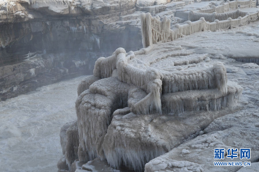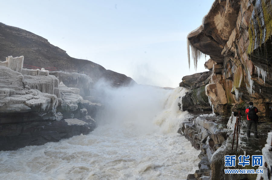 寫真は11日、壷口瀑布の側で寫真を撮影する観光客。黃河の壷口瀑布は季節(jié)と水量によってその姿を変え、四季折々に異なった美しい姿を見せる。冬の壷口では靜けさが広がり、透き通った氷と雪の美しい世界が広がる。新華網が伝えた。(編集YH)