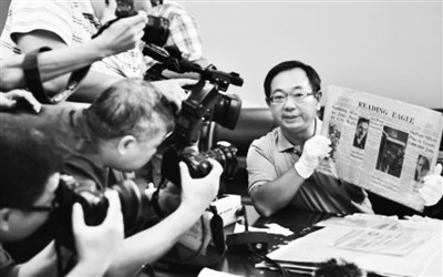 南京に到著した米國(guó)籍の華人、魯照寧さんと陳燦培さんの両氏は、このたび世界各地で収集した百點(diǎn)以上の抗日戦爭(zhēng)に関わる文化財(cái)を記念館に寄付した。當(dāng)日、南京出身の魯さんは自ら集めた舊日本軍の酒杯や新聞、寫(xiě)真などの文化財(cái)?史料など計(jì)73點(diǎn)を持參した。