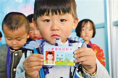 寫(xiě)真は身分証明カードを見(jiàn)せる保育所の子ども。