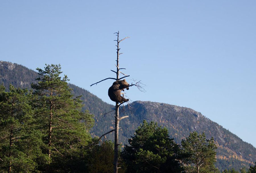ノルウェー?オスロに住むゲームデザイナー、ジョシュ?トールセン(音訳)さん(41歳)は、幸運にも木の梢でくつろぐ4歳の熊を発見し、その様子をカメラに収めた。中國新聞網が13日付で伝えた。(編集YH)