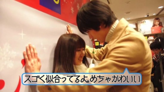 イベントは、対象商品を手にした女性客が「これ、似合う?」と聲かけると、イケメンモデルのロビンさんと巖永徹也さんからの壁ドンと「何でそんなにかわいいの?」などの甘いセリフを體験できるというもので、女性だけでなく、男性も含め多數(shù)の客が訪れた。
