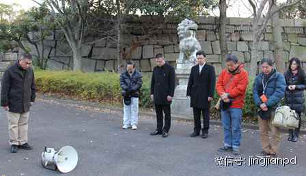 初めて迎える南京大虐殺犠牲者國家追悼日に呼応して、日本の民間団體が13日の午後、大阪城で南京大虐殺犠牲者への追悼を行った。來場した人々は中國駐大阪総領(lǐng)事館の館員とともに30萬人の犠牲者に1分間の黙禱を捧げた。主催者はこの日のために不思議な裝備を用意していた?!笐闋幏磳潯工葧欷砍啶ぜ垽?枚貼られたラッパ型拡聲器だった。