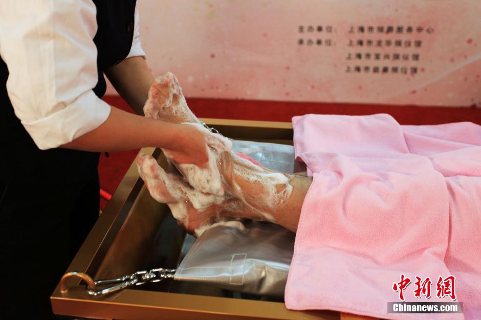 死者(モデル)の身體を丁寧に洗い清め、裝束を著せ、死化粧を施し、最後には敬虔な祈りをささげて、死者の旅立ちを見送る納棺士。上海のある葬儀センターでは、昨年から「故人の沐浴」サービスの提供を始めており、今日までに2700體に沐浴サービスを提供している。同センターは、人々が故人に最大限の敬意を払い、愛情をもって故人を送ってもうためとしている。中國新聞網(wǎng)が伝えた。(編集YH)