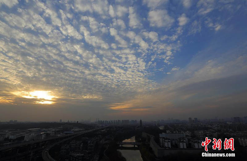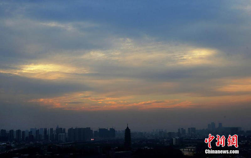 冷たい北風(fēng)の影響を受け、1日青空だった江蘇省南京市で18日夕方、色鮮やかな美しい夕焼けが広がり、道行く人を魅了した。中國新聞網(wǎng)が伝えた。(編集YH)