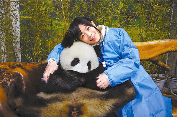 タレント藤岡みなみとジャイアントパンダ=成都ジャイアントパンダ繁殖研究基地(寫真提供:成都ジャイアントパンダ繁殖研究基地)