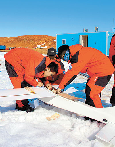 現(xiàn)地時(shí)間12月23日、小型リモートセンシング無人機(jī)「極鷹1號(hào)」が南極?中山基地から10キロ離れた地點(diǎn)で離陸し、1時(shí)間後に500枚以上の高畫質(zhì)畫像を攜えて著陸した。中國が南極で無人機(jī)を使い、リモートセンシング測(cè)量?製図作業(yè)を?qū)g施したのはこれが初めて。寫真は調(diào)査隊(duì)員が無人機(jī)の調(diào)整をする様子。人民日?qǐng)?bào)が伝えた。(編集YF)