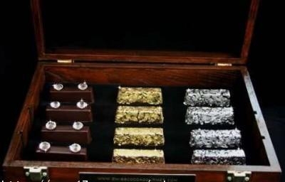 貴金屬や寶石で覆われた超豪華なチョコを作ったのは、スイスのチョコメーカー「Cocoa Gourmet」。金や銀、ダイヤなどで裝飾され、一箱12粒で1250ドル。