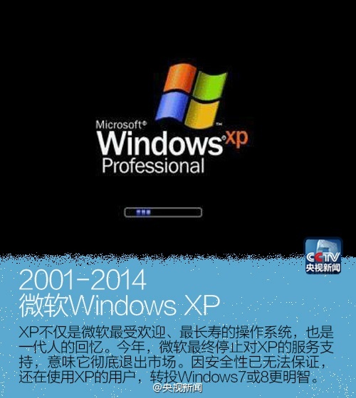 Windows XP。マイクロソフトで最も人気を集めた、長(zhǎng)壽のOS(出典:中央テレビ局ニュースセンターの公式微博(ウェイボー)「央視新聞」)。新華網(wǎng)が伝えた。(編集YH)