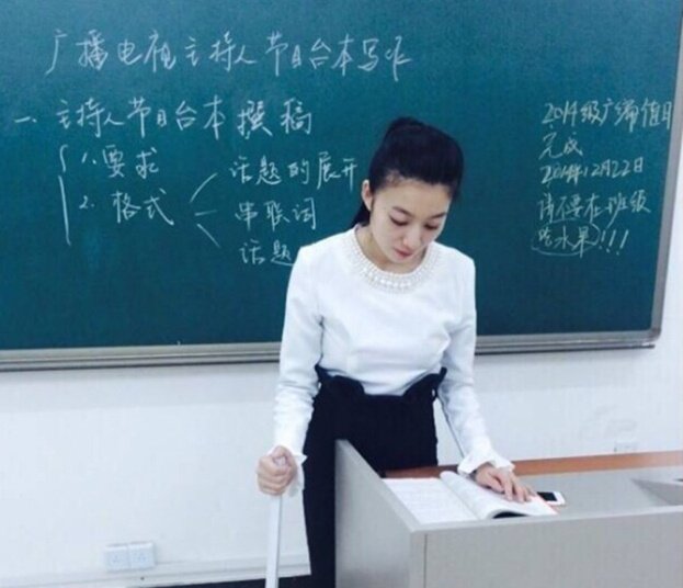 杖をついて授業(yè)をする「最も美しい」女性教師