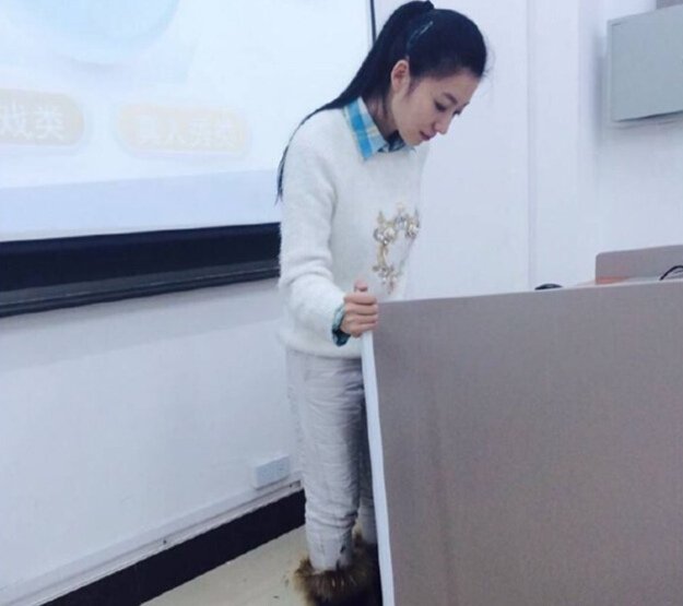 吉林師範大學の美人教師、黃鑫さんは杖をつきながら授業(yè)する姿で人気を集め、學生たちから「最も美しい女性教師」と賞賛されている。自動車事故のため黃さんは腰に重傷を負ったが、學生たちの期末試験のために杖をついて授業(yè)を行っている。(編集YH)