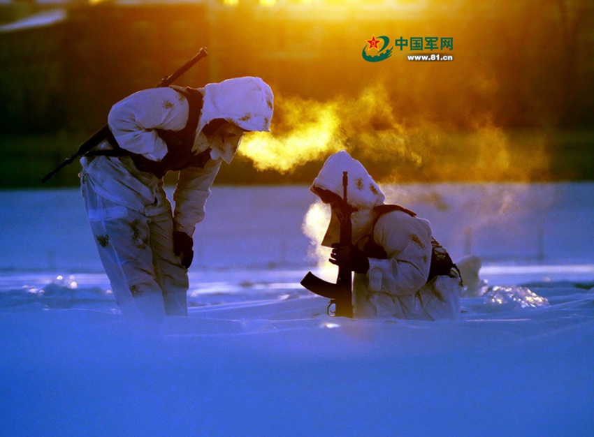 「黒河好八連」の哨兵、辛國強さんと劉健冒さんは21日、吐息も凍る零下30度以下の中ロ國境地域で、不審な足跡の調(diào)査を進めていた。長時間、長距離の徒歩での巡回を経て立ち止まった若い二人の哨兵、その吐息が夕陽に照らされると、背後の夕焼けや建物とが相まって、靜かで心溫まる光景が広がった。中國軍網(wǎng)が伝えた。(編集YH)