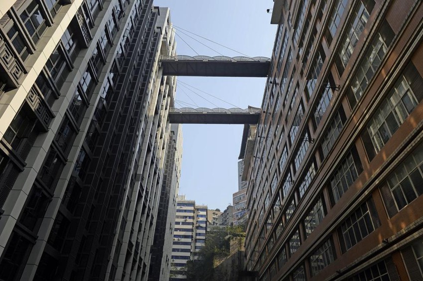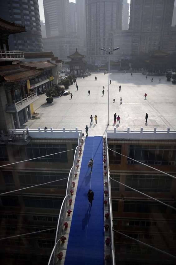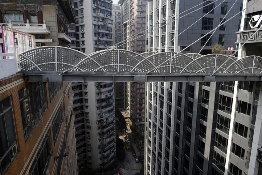 重慶解放碑近くのある新築ビルに、行き來が便利なようにと22階の高さに鉄筋の空中通路が2カ所設(shè)けられた。新華網(wǎng)が伝えた。