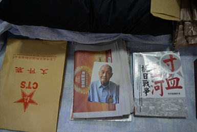 鄒道本氏がいつも枕元に置いている一番のお気に入り、抗日戦爭関連書籍