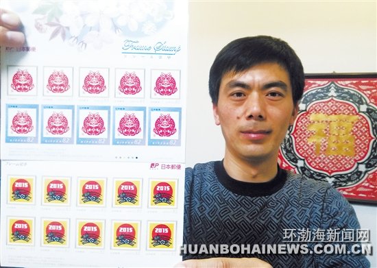 河北省玉田県の無形文化遺産?切り絵細工の職人?張建中さんがこのほど、自身の作品をモチーフにした日本郵便発行のオリジナル切手を受け取った。モチーフになった作品は、「2015の太陽と共に走る羊」と「龍娃」だ。 唐山晩報が報じた。