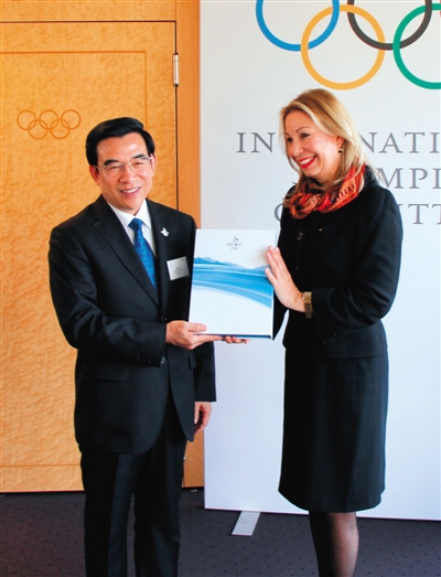 北京冬季五輪招致委員會(huì)の代表団が5日、「立候補(bǔ)ファイル」を提出するため、國(guó)際オリンピック委員會(huì)(IOC)本部があるスイスのローザンヌに到著した。新華社が報(bào)じた。