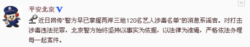 【デマ】北京警察がすでに120人の薬物蕓能人リストを把握