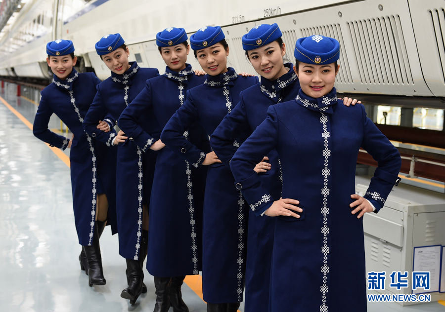 呼和浩特(フフホト)鉄道局によると、內(nèi)蒙古自治區(qū)では8日から集包線(集寧—包頭)で高速列車が開通する。これは同自治區(qū)初の高速列車となる。同線の女性乗務員が6日、新しい制服姿で呼和浩特高速列車所に登場した。彼女たちは平均年齢25歳で、制服は民族衣裝のデザインが取り入れられている。新華網(wǎng)が伝えた。(編集YH)