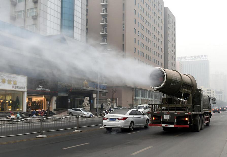 河南省鄭州市、霧を噴霧するトラックが登場 (2)