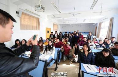 4、武漢市の大學(xué)教師、記念撮影で出欠を取る