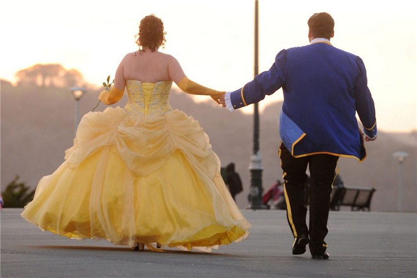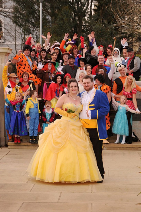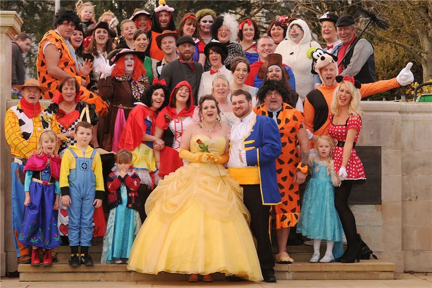 イギリスの『デイリー?メール』の1月4日の報道によると、イギリスのデヴォン出身の新婦トニーさんとオーストラリア出身の新郎エリック?オーフォードさんは2日、プリマスの役所でディズニーをテーマにした挙式を行なった。新婦と新郎は『美女と野獣』のべラと野獣の格好をし、出席者も様々なキャラクターに扮し、変わった結(jié)婚式になった。