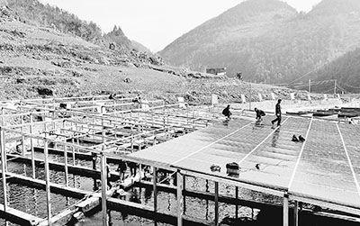 「恩施自治州のセレンリッチ産業(yè)模範第一村」と呼ばれる大洪寨村には、人間にとって必要不可欠なミネラルのひとつであるセレンを豊富に含む冷水があり、通年の最高水溫は摂氏15度以下で、サーモンやカラチョウザメなどを中心とする冷水魚の養(yǎng)殖に適している。ソーラーパネルによって太陽光を遮斷することで水溫が下がり、冷水魚の養(yǎng)殖に適した環(huán)境になる。(編集YF)
