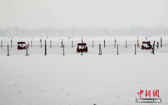 北京の2015年の初雪に深刻な汚染が重なる 煙霧と雪の中の頤和園 (2)