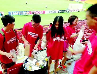 サッカーアジア杯會場でゴミを拾う中國人サポーター (5)
